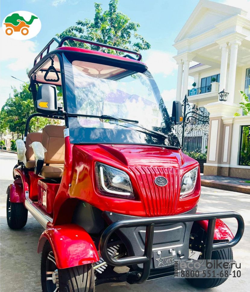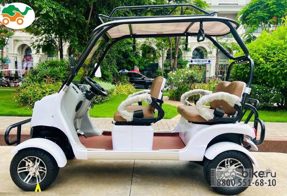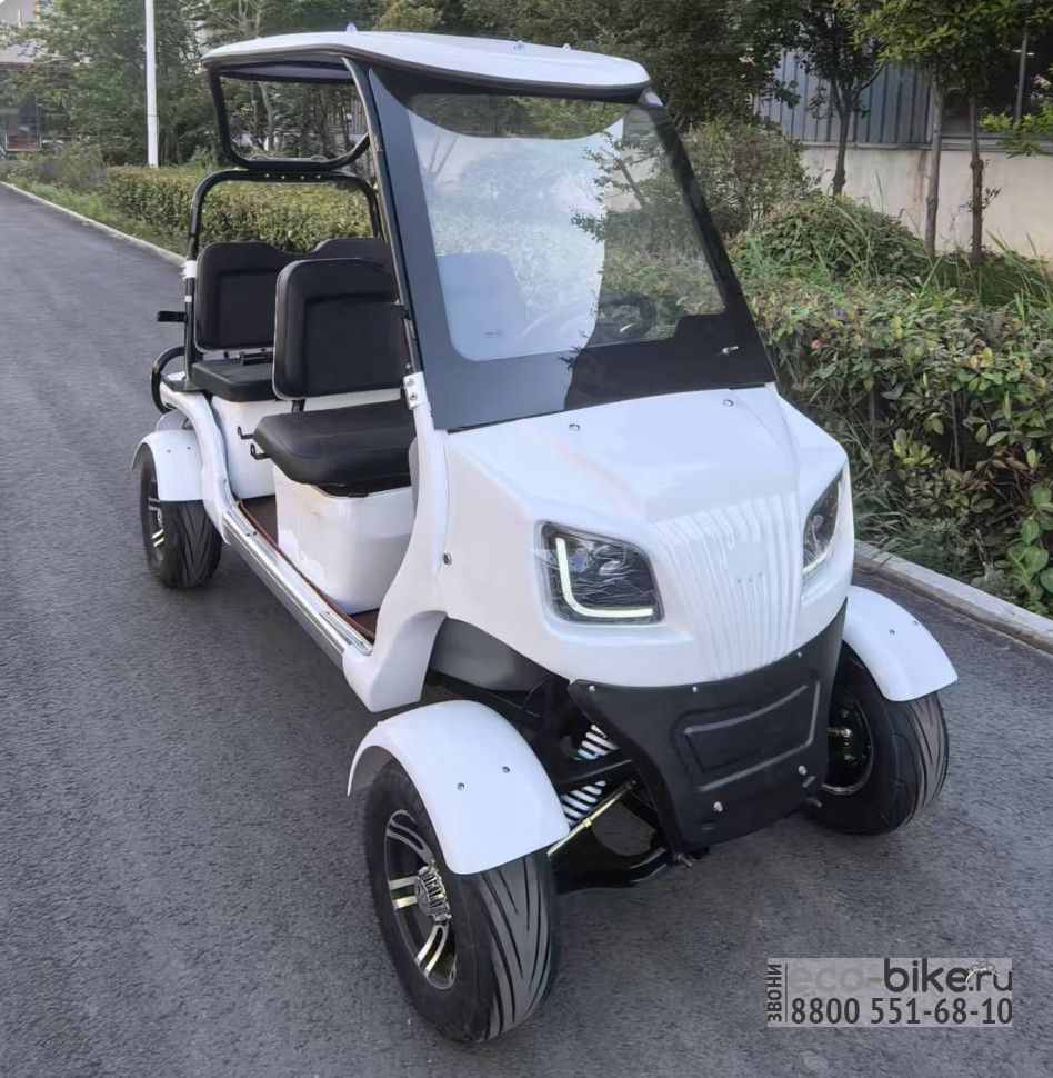 Четырехместный гольфкар представляет собой электрическое транспортное средство, спроектированное для перевозки четырех пассажиров, часто используется на гольф-полях, в коммерческих и индустриальных сферах, таких как курорты, заводы, склады, аэропорты, парки и другие места, где требуется эффективный и экологичный способ перевозки пассажиров. Электрические гольфкары считаются более экологичными, так как не выбрасывают вредных газов и имеют низкий уровень шума, что особенно важно в рабочих местах, где шум может быть проблемой.